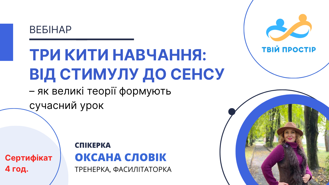 Під час вебінару ви дізнаєтеся, як три ключові психологічні парадигми навчання — біхевіоризм, когнітивізм і конструктивізм — впливають на сучасний урок, та навчитеся поєднувати їх у збалансований, осмислений освітній процес.